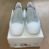 Straying from rebellious roots and offering a more romantic line, this collection was inspired by the works of English poet and painter William Blake. Crystal embellishments cascade across these slip-on sneakers with an elevated sole. *WORN ONCE ON A RED CARPET EVENT