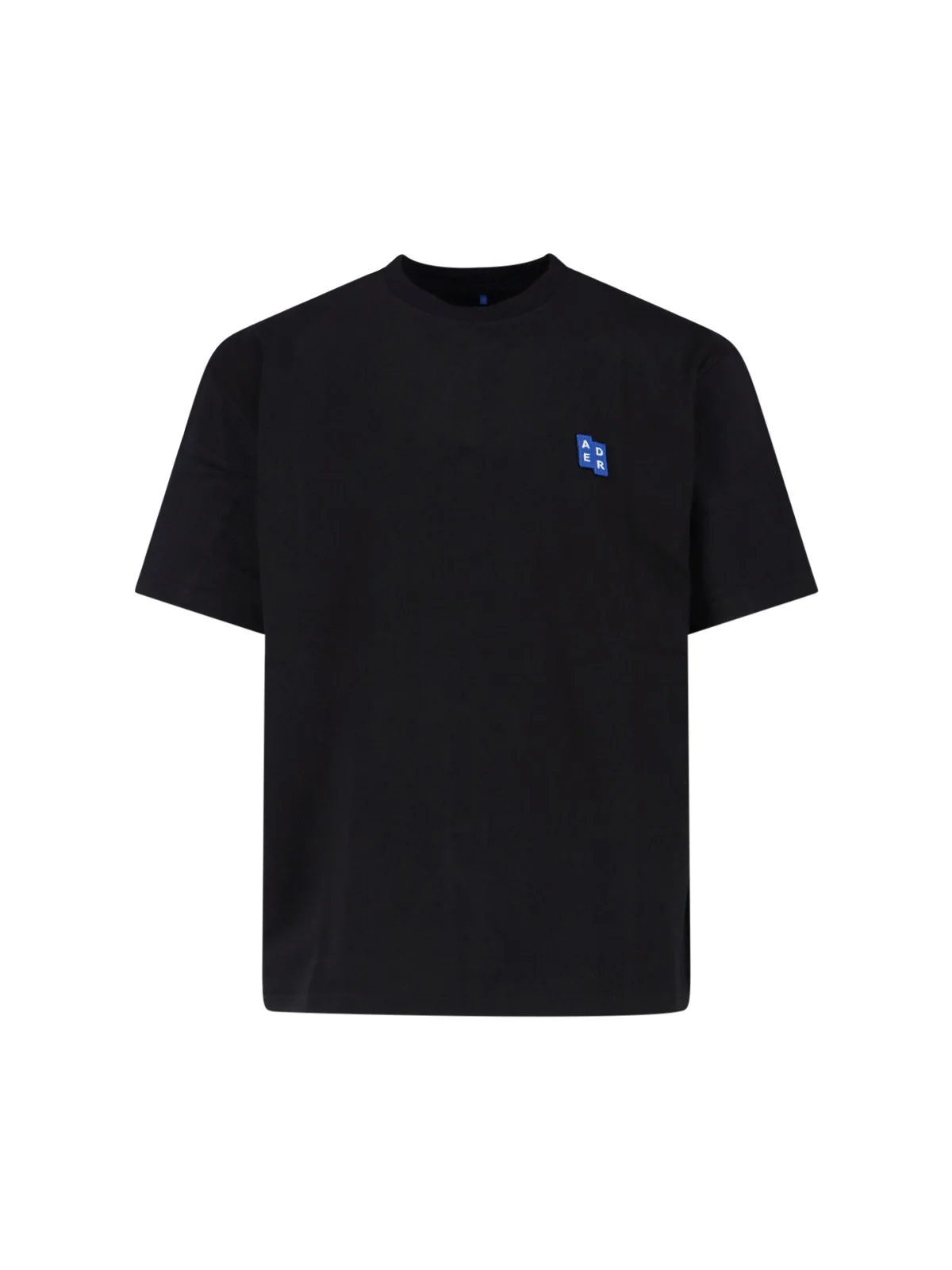 BLACK COTTON ADER ERROR TETRIS CREW NECK T-SHIRT WITH SHORT SLEEVES, CONTRAST LOGO EMBROIDERY ON THE FRONT, EMBROIDERED LABEL DETAIL ON THE BACK, RIBBED TRIM, STRAIGHT HEM. PRODUCT INFO PRODUCT CODE BO42FYTS0101BKNOIR COMPOSITION: 75% COTTON, 25% POLYESTER SIZE AND FIT: REGULAR FIT MADE IN: KOREA