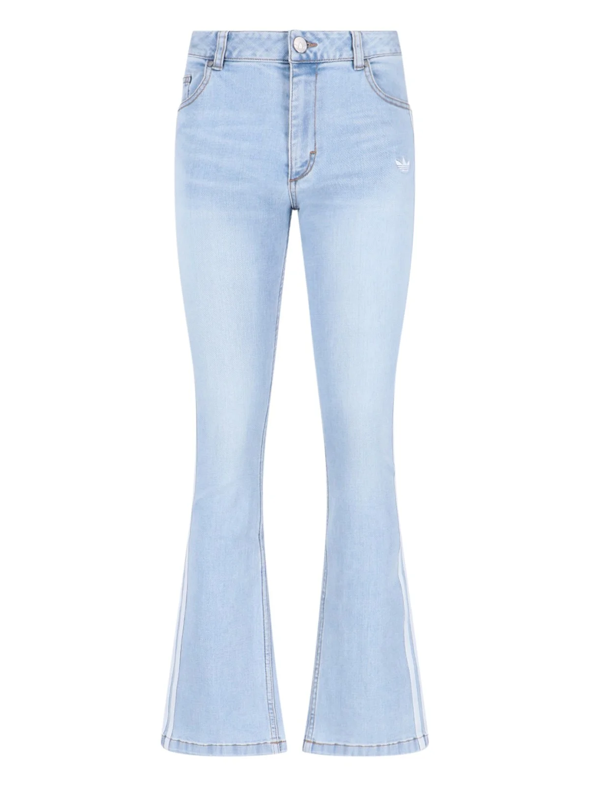 ADIDAS ADILENIUM BOOTCUT JEANS IN LIGHT BLUE COTTON DENIM WITH MID WAIST, BELT LOOPS, BUTTON AND ZIP CLOSURE, FIVE-POCKET DESIGN, CONTRAST "TREFOIL" LOGO EMBROIDERY ON THE SIDE, LEATHER LOGO PATCH AT THE BACK, AND WIDE LEG. PRODUCT INFO PRODUCT CODE KE9801LTBLUE COMPOSITION: 71% COTTON, 20% POLYESTER, 4% ELASTANE SIZE AND FIT: REGULAR FIT MADE IN: CHINA