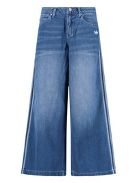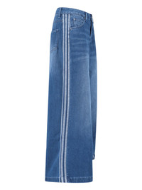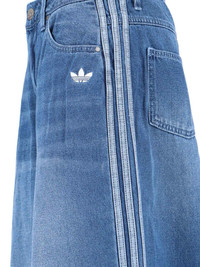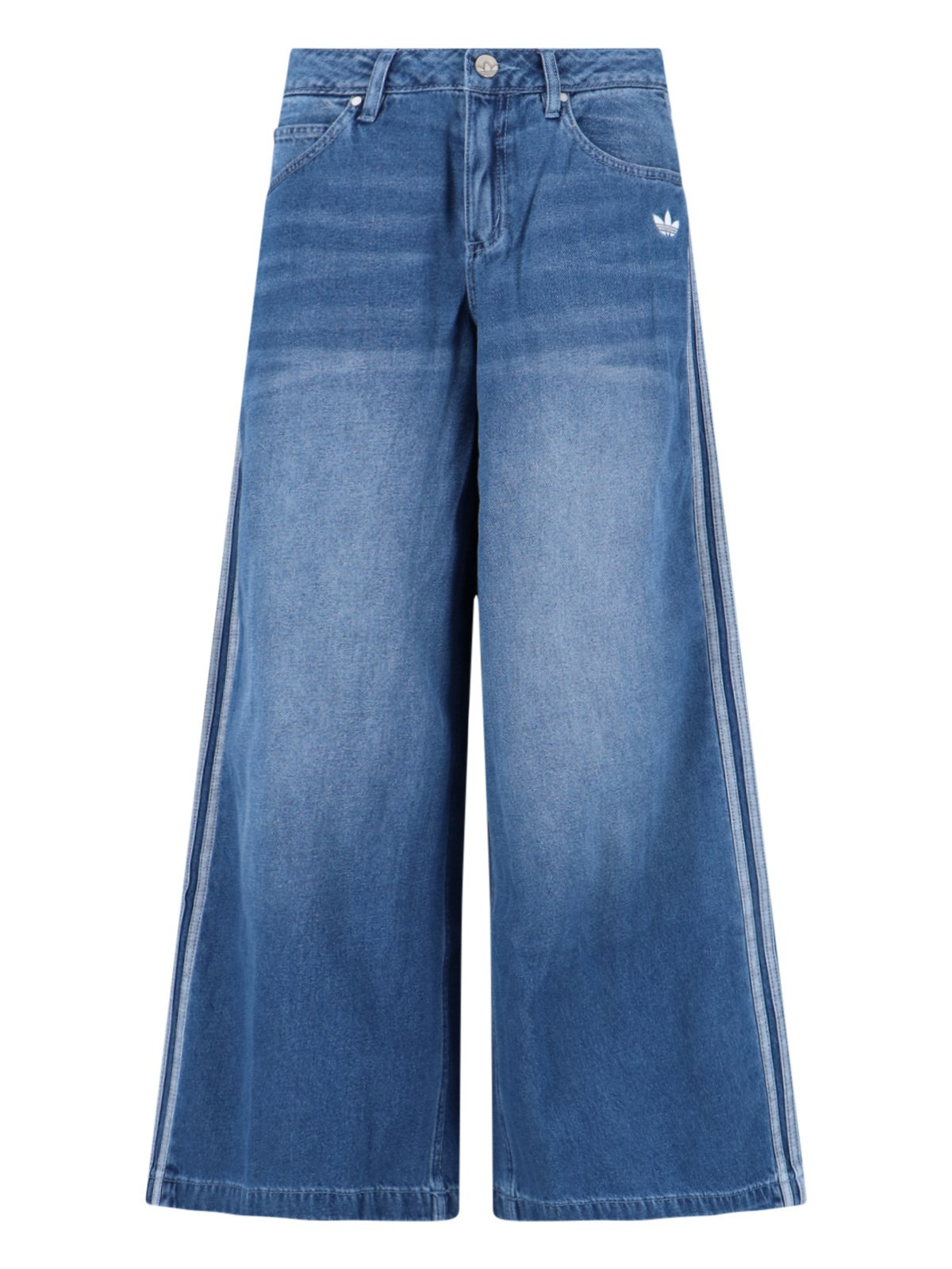 WIDE ADILENIUM ADIDAS BLUE COTTON JEANS WITH DISTRESSED WASH, BELT LOOPS, BUTTON AND ZIP CLOSURE, FIVE POCKETS, SIDE TREFOIL LOGO EMBROIDERY, ICONIC SIDE BANDS, WIDE LEG. PRODUCT INFO PRODUCT CODE JV7454INDDNM COMPOSITION: 100% COTTON SIZE AND FIT: LOOSE FIT MADE IN: INDONESIA