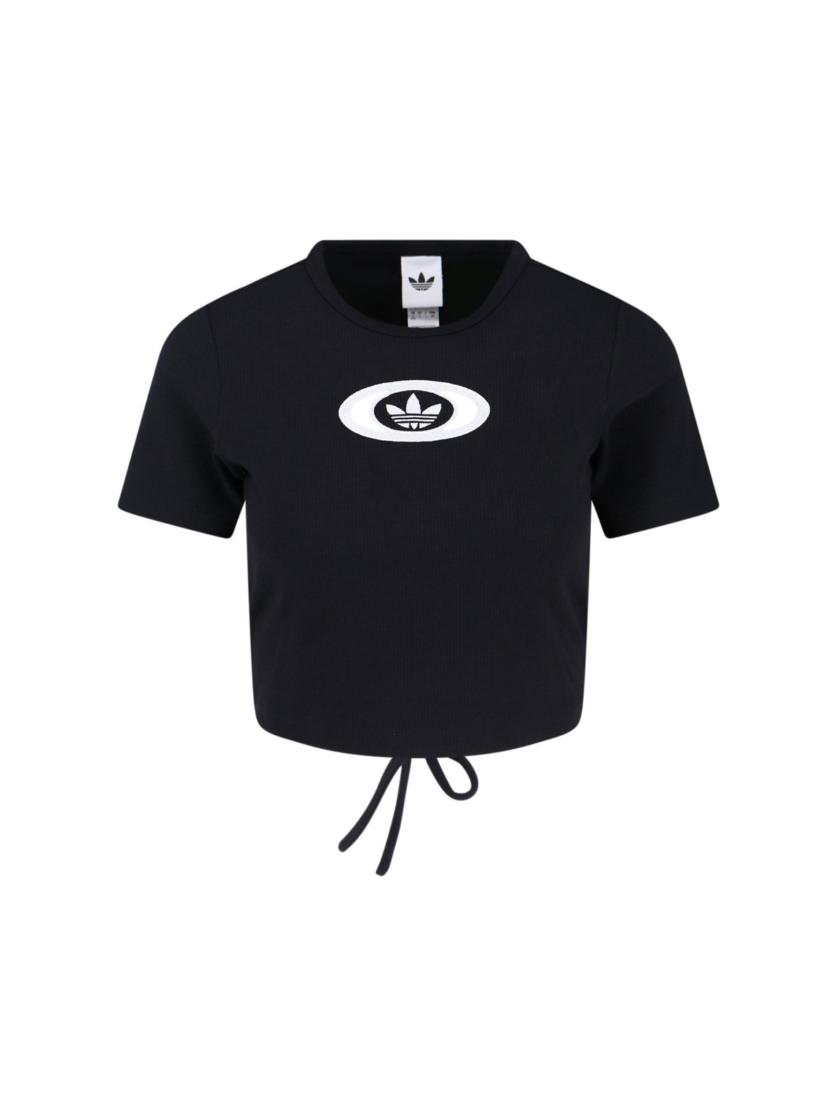 ADIDAS CAMPUS 2000 CROP TOP IN RIBBED VISCOSE AND BLACK COTTON WITH ROUND NECKLINE, SHORT SLEEVES, CONTRAST "TREFOIL" LOGO EMBROIDERY AT THE FRONT, CUT-OUT DETAIL, MAXI CUT-OUT AT THE BACK, LACE-UP CLOSURE AT THE BACK, STRAIGHT HEM. PRODUCT INFO PRODUCT CODE KC8804BLACK COMPOSITION: 47% VISCOSE, 43% COTTON, 10% ELASTANE SIZE AND FIT: REGULAR FIT MADE IN: CHINA