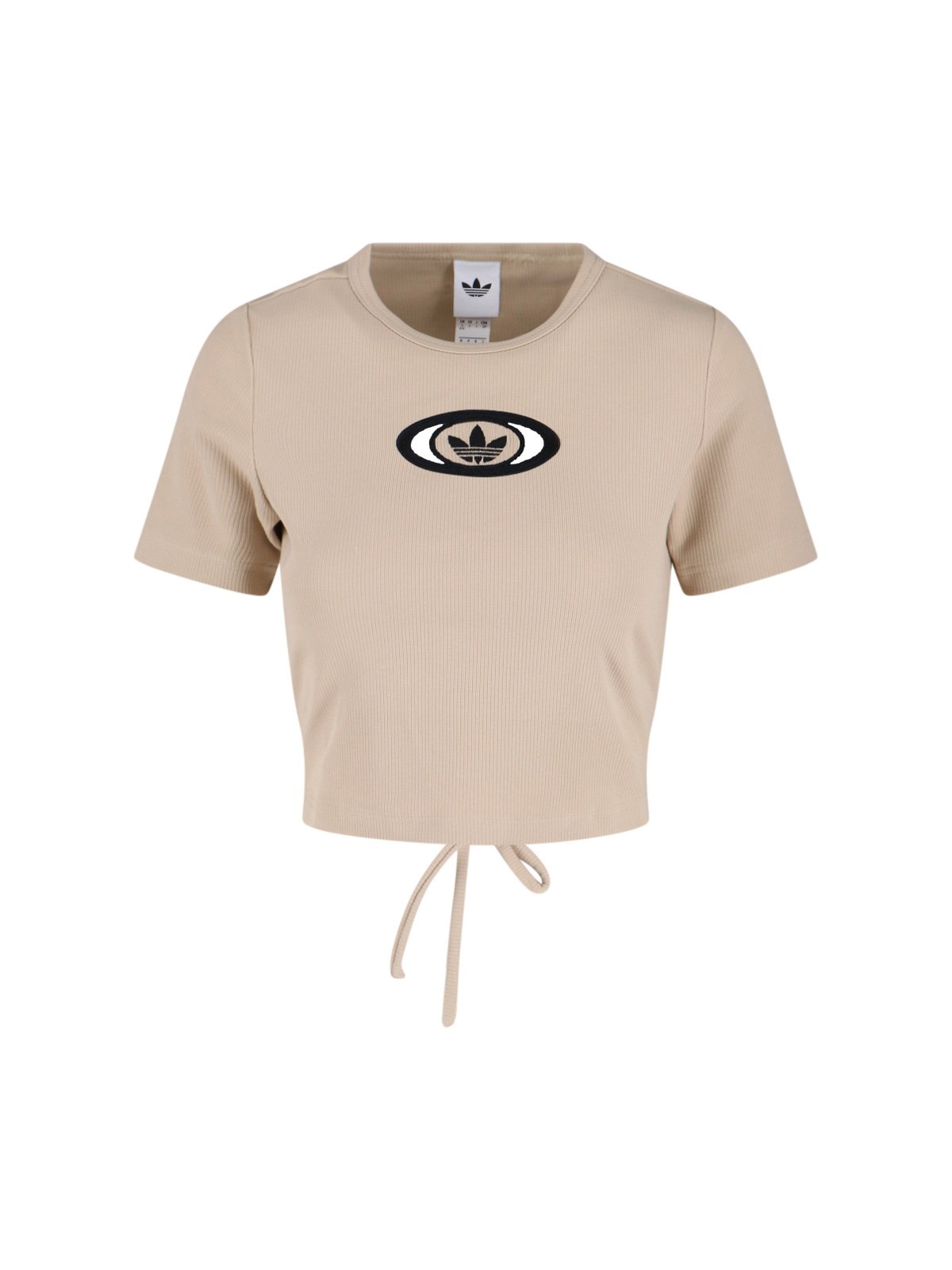 CAMPUS 2000 ADIDAS VISCOSE AND BEIGE COTTON CROPPED TOP WITH RIBBED PATTERN, ROUND NECKLINE, SHORT SLEEVES, BLACK 'TREFOIL' LOGO EMBROIDERY ON THE FRONT, CUT-OUT DETAIL, MAXI CUT-OUT ON THE BACK, LACE CLOSURE AT THE BACK, STRAIGHT HEM. PRODUCT INFO PRODUCT CODE KC8803STOKHA COMPOSITION: 47% VISCOSE, 43% COTTON, 10% ELASTANE SIZE AND FIT: REGULAR FIT MADE IN: CHINA