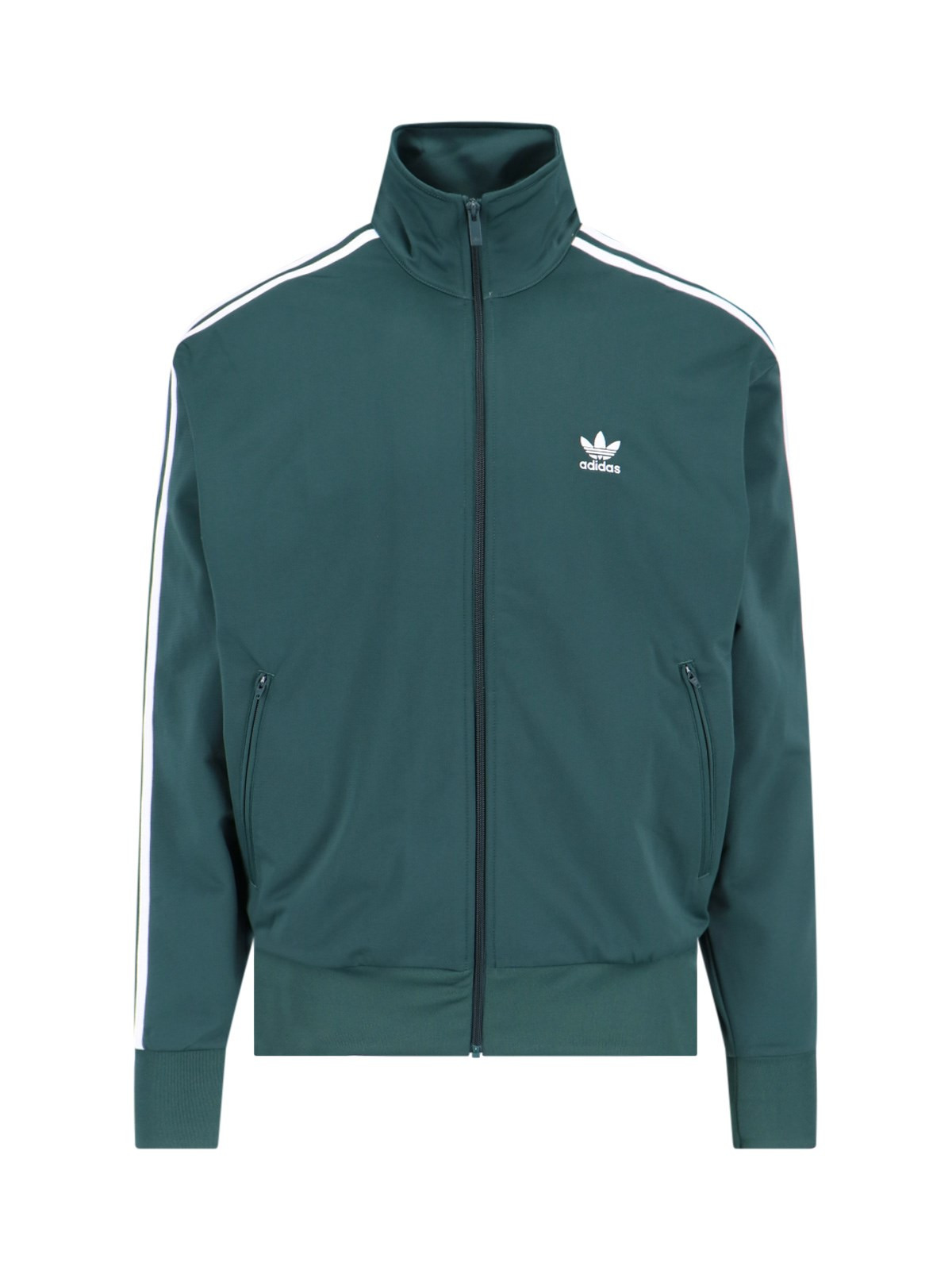 ADIDAS GREEN FABRIC 'CLASSICS FIREBIRD' ZIP SWEATSHIRT WITH HIGH NECK, ZIP CLOSURE, 'TREFOIL' LOGO EMBROIDERY ON THE CHEST, TWO SIDE ZIP POCKETS, ICONIC SIDE BANDS, RIBBED TRIMS, STRAIGHT HEM. PRODUCT INFO PRODUCT CODE IY9892MINGRE COMPOSITION: 100% RECYCLED POLYESTER SIZE AND FIT: SOFT FIT MADE IN: JORDAN - PRODUCT MADE FROM RECYCLED MATERIALS