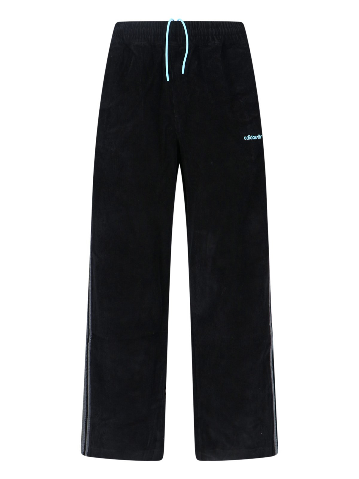 ADIDAS COURDORY BLACK CORDUROY SPORTS PANTS WITH ELASTIC WAISTBAND, LACES CLOSURE, CONTRAST LOGO EMBROIDERY, TWO SIDE POCKETS, ICONIC SIDE BANDS, TWO BACK POCKETS, STRAIGHT LEG. PRODUCT INFO PRODUCT CODE JX3107BLACK GRESIX COMPOSITION: 100% COTTON SIZE AND FIT: REGULAR FIT MADE IN: VIETNAM