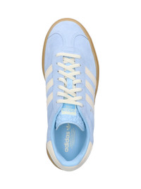 ADIDAS GAZELLE BOLD PLATFORM SNEAKERS IN LIGHT BLUE SUEDE WITH ROUND TOE, LACES, TREFOIL LOGO PRINT ON TEXTURED TONGUE, ICONIC WHITE BANDS ON THE SIDE, EMBOSSED GOLD LOGO ON THE SIDE, WHITE LEATHER BACK TAB, RUBBER PLATFORM SOLE, AND EMBOSSED LOGO DETAIL ON THE SIDE. PRODUCT INFO PRODUCT CODE JQ7776CLESKY CREWHT GOLDMT COMPOSITION: 100% LEATHER MADE IN: INDONESIA - SOLE: 100% RUBBER
