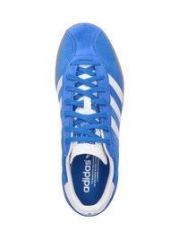 ADIDAS GAZELLE INDOOR PRO SNEAKERS IN BLUE SUEDE WITH ROUND TOE, LACES, BLUE LOGO PRINT ON TEXTURED TONGUE, ICONIC WHITE LEATHER BANDS ON THE SIDE, GOLD LOGO PRINT ON THE SIDE, WHITE LEATHER TAB ON THE BACK, BLUE "TREFOIL" LOGO PRINT DETAIL, RUBBER SOLE, AND EMBOSSED LOGO DETAIL ON THE SIDE. PRODUCT INFO PRODUCT CODE IH1086BLUE CWHITE POBLUE COMPOSITION: 100% LEATHER MADE IN: VIETNAM - SOLE: 100% RUBBER