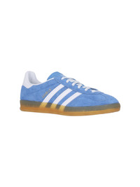 ADIDAS GAZELLE INDOOR SNEAKERS IN BLUE SUEDE WITH WHITE DETAILS, ROUND TOE, T-INSERT DETAIL, LACES, LOGO LABEL ON TEXTURED TONGUE, ICONIC SIDE BANDS, GOLD LOGO PRINT ON THE SIDE, BEIGE RUBBER SOLE, AND EMBOSSED LOGO DETAIL ON THE SIDE. PRODUCT INFO PRODUCT CODE HQ8717BLUFUS FTWWHT GOLDMT COMPOSITION: 100% LEATHER MADE IN: VIETNAM - SOLE: 100% RUBBER