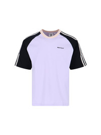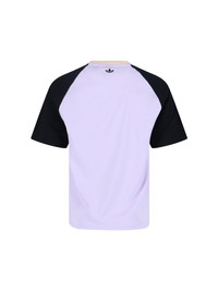 ADIDAS X WALES BONNER PURPLE COTTON T-SHIRT WITH CREWNECK, SHORT SLEEVES, CONTRASTING LOGO PRINT AT THE FRONT, ICONIC BANDS ON THE SLEEVE, TREFOIL PRINTED LOGO AT THE BACK, AND STRAIGHT HEM. PRODUCT INFO PRODUCT CODE KD0337PRPTNT BLACK COMPOSITION: 100% COTTON SIZE AND FIT: REGULAR FIT MADE IN: CHINA