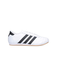ADIDAS WHITE LEATHER TAEKWONDO SNEAKERS WITH ROUND TOE, LACES, CONTRASTING EMBOSSED LOGO TONGUE, ICONIC CONTRASTING BANDS ON THE SIDE, SIDE LOGO PATCH, CONTRASTING BACK TAB WITH LOGO DETAIL, RUBBER SOLE. PRODUCT INFO PRODUCT CODE JS1194FTWWHT CBLACK GUM3 COMPOSITION: 100% LEATHER - SOLE: 100% RUBBER