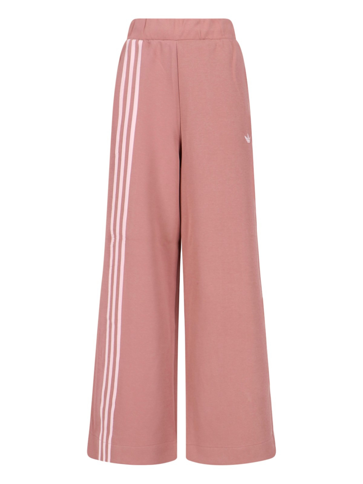 WIDE OFF PLACED' PANTS ADIDAS IN PINK 'SPACER' FABRIC WITH MID ELASTIC WAISTBAND, TWO SIDE POCKETS, ICONIC CONTRAST BAND DETAIL ON ONE LEG, CONTRAST LOGO EMBROIDERY ON THE OTHER, WIDE LEG. PRODUCT INFO PRODUCT CODE JW3621WARCLA COMPOSITION: 53% COTTON, 47% RECYCLED POLYESTER SIZE AND FIT: SOFT FIT MADE IN: CAMBODIA - PRODUCT MADE FROM RECYCLED MATERIALS