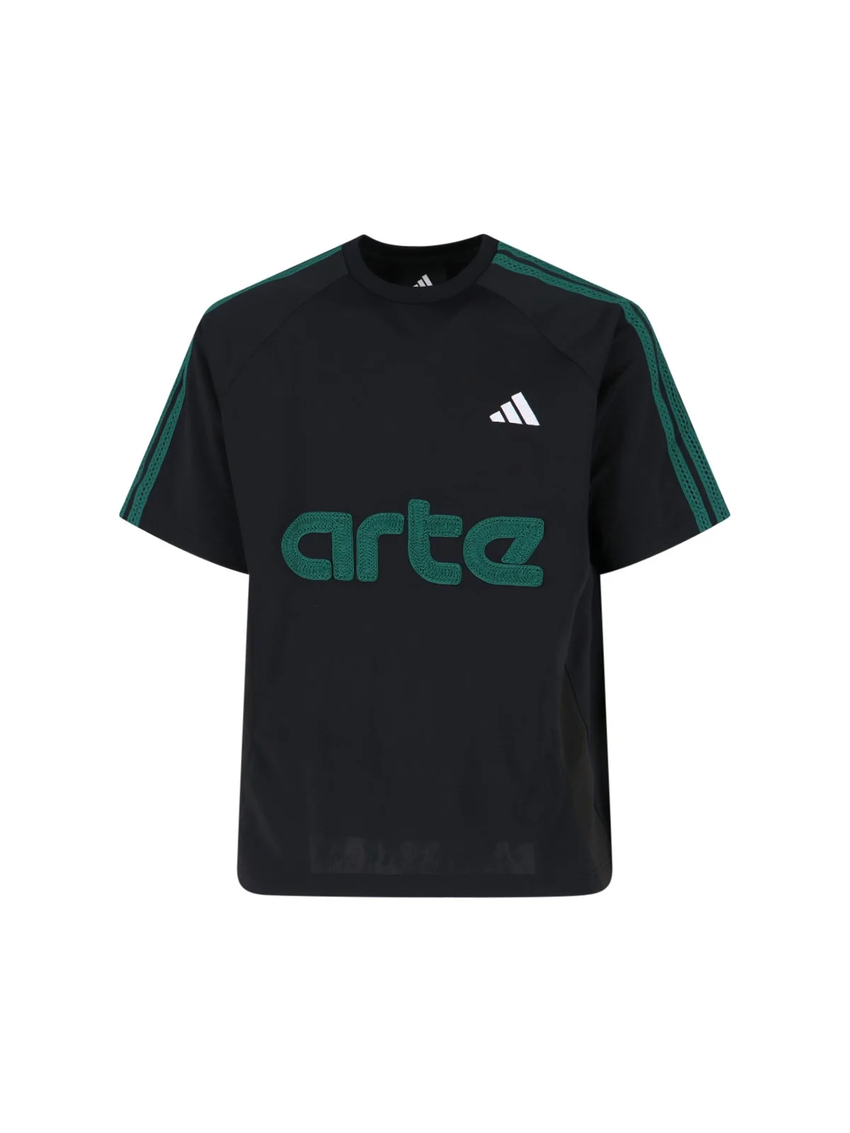 ADIDAS X ARTE LOGO T-SHIRT IN BLACK FABRIC WITH CREWNECK, SHORT SLEEVES, ICONIC CONTRASTING SIDE BANDS, CONTRASTING LOGO ON THE FRONT, AND STRAIGHT HEM. PRODUCT INFO PRODUCT CODE KC9602BLACK COMPOSITION: 100% POLYESTER SIZE AND FIT: REGULAR FIT MADE IN: CHINA