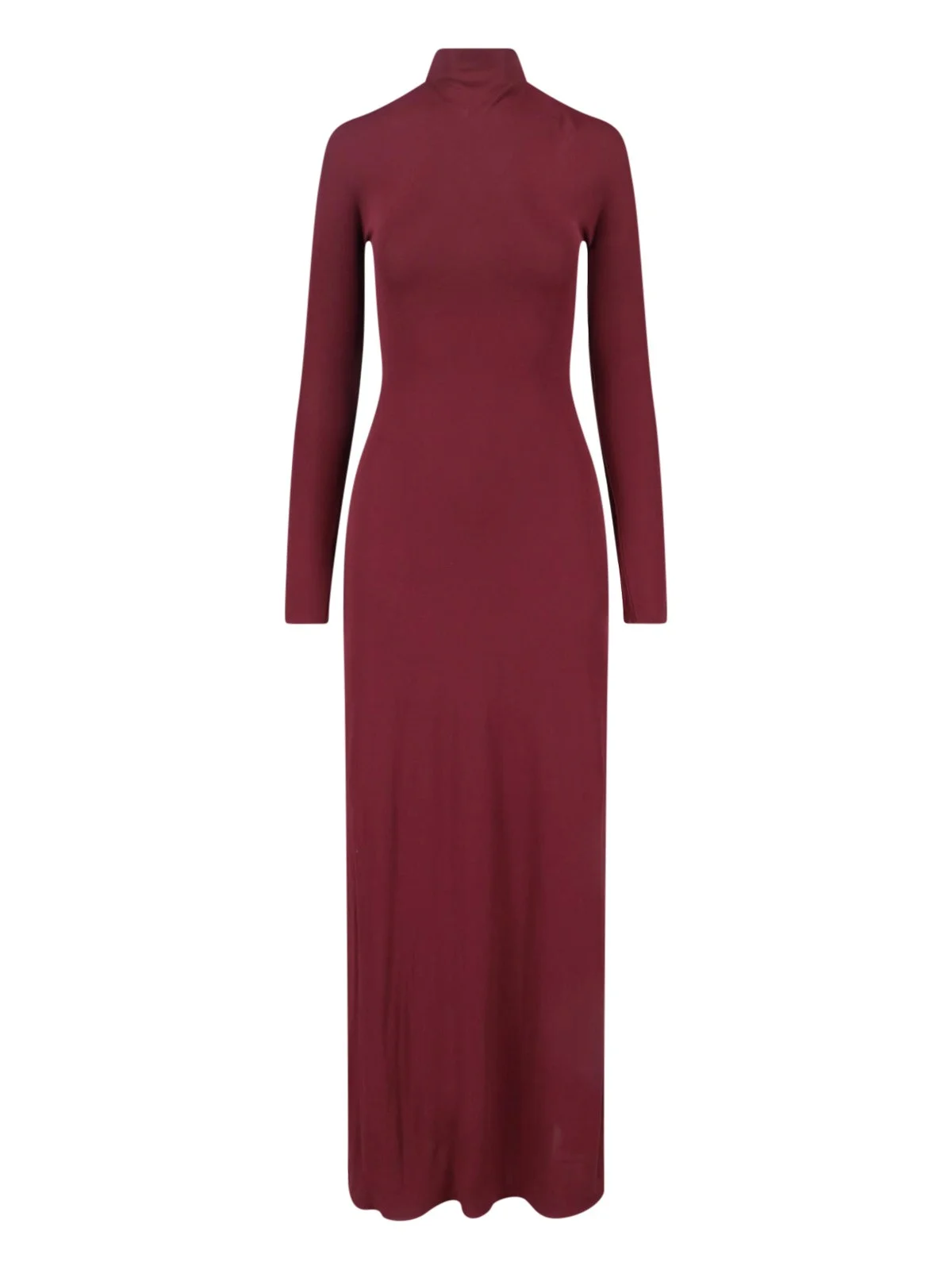 ALAIA DRAPED MAXI DRESS IN BURGUNDY VISCOSE WITH HIGH NECK, LONG SLEEVES, INVISIBLE SIDE ZIP CLOSURE, DRAPED DETAILS, STRAIGHT HEM. PRODUCT INFO PRODUCT CODE AA9R2870J090C713 COMPOSITION: 100% VISCOSE SIZE AND FIT: SLIM FIT MADE IN: ITALY