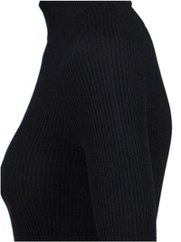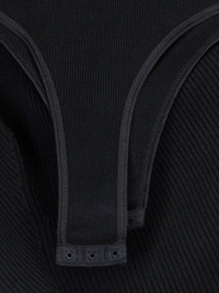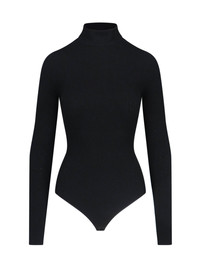 ALAIA KNITTED BODYSUIT IN BLACK FABRIC WITH RIBBED PATTERN, HIGH NECK, HIGH-LEG DESIGN, BUTTON CLOSURE ON THE HEM. PRODUCT INFO PRODUCT CODE AA9B0330K017A995 COMPOSITION: 83% VISCOSE, 17% POLYESTER SIZE AND FIT: SLIM FIT MADE IN: ITALY