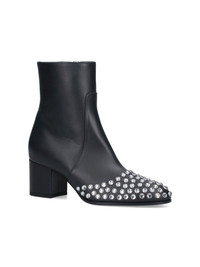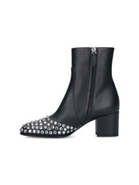ALAIA LOW ANKLE BOOTS WITH BLACK LEATHER RHINESTONES, ROUND TOE, SILVER RHINESTONE DETAILS, SIDE ZIP CLOSURE, SLIP-ON FIT, SQUARE HEEL, LEATHER SOLE. PRODUCT INFO PRODUCT CODE AA3B089CK291999 COMPOSITION: 100% CALF LEATHER SIZE AND FIT: - HEEL 6 CM MADE IN: ITALY - DETAILS: 100% CRYSTAL - SOLE: 100% LEATHER
