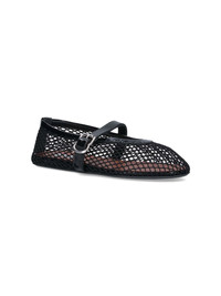 ALAÏA MESH BALLET FLATS IN BLACK PERFORATED FABRIC WITH ROUND TOE, TOP BUCKLE STRAP, RUBBER SOLE. PRODUCT INFO PRODUCT CODE AA3A029TK007999 COMPOSITION: 100% POLYAMIDE MADE IN: ITALIA - TRIMS: 100% LEATHER - SOLE: 100% RUBBER