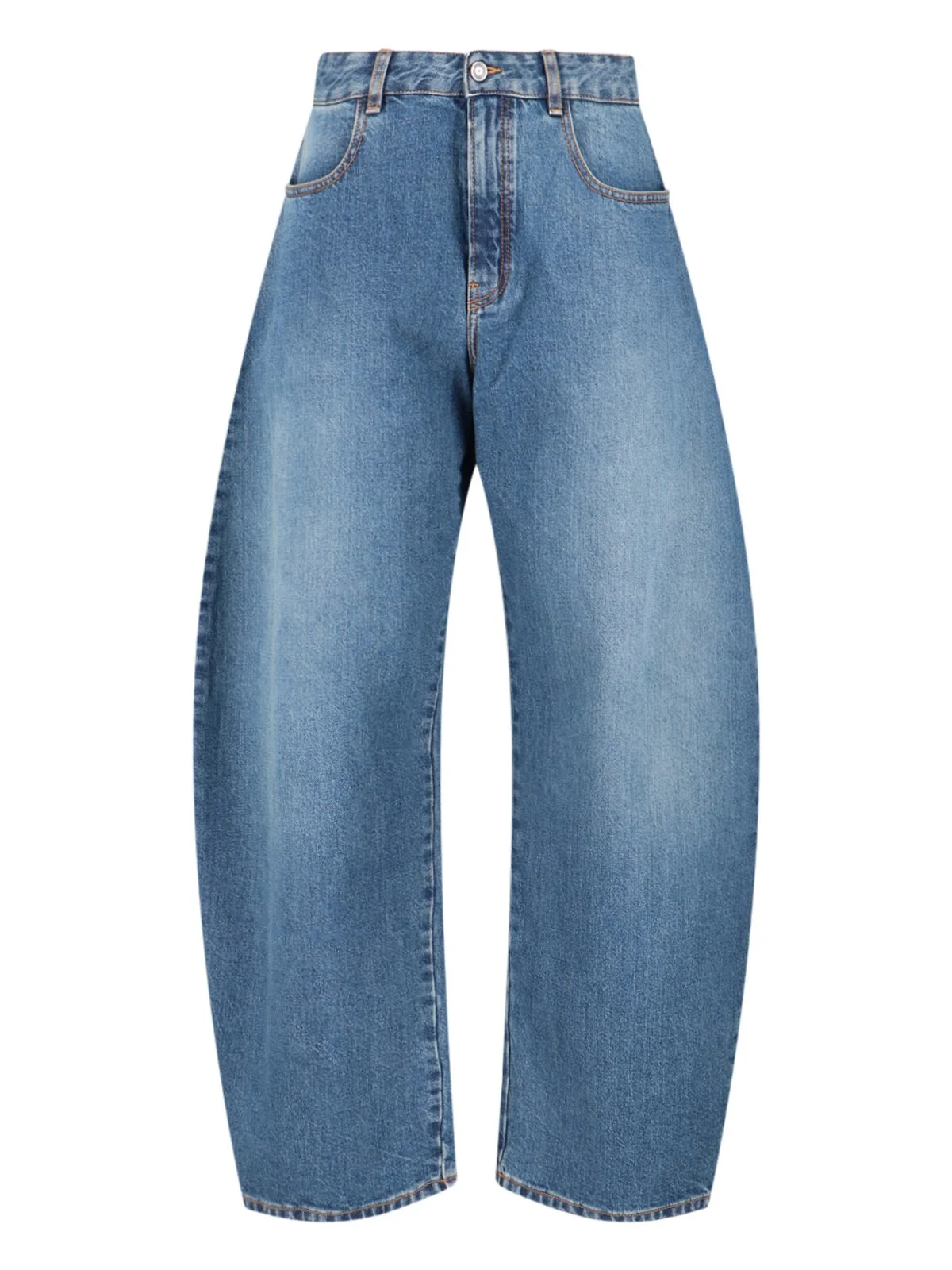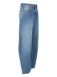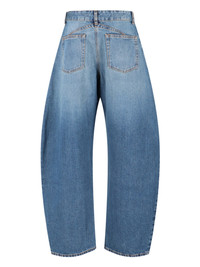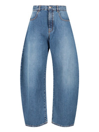 ALAIA ROUNDED JEANS IN LIGHT BLUE COTTON WITH HIGH WAIST, BELT LOOPS, BUTTON AND ZIP CLOSURE, TWO FRONT POCKETS, TWO BACK PATCH POCKETS, ICONIC BACK PLEATS, ROUNDED LEG. PRODUCT INFO PRODUCT CODE AA9P1215D006B505 COMPOSITION: 99% COTTON, 1% POLYURETHANE, POCKET LINING: 65% POLYESTER, 35% COTTON SIZE AND FIT: SOFT FIT MADE IN: ITALY