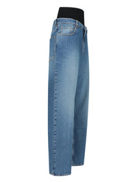 STRAIGHT BLUE DENIM JEANS, DISTRESSED WASH, HIGH WAIST, ELASTIC BAND DETAIL, BELT LOOPS, BUTTON AND ZIP CLOSURE, FIVE POCKET DESIGN, STRAIGHT LEG. PRODUCT INFO PRODUCT CODE AA9P0155T5364525 COMPOSITION: 99% COTTON, 1% POLYURETHANE SIZE AND FIT: REGULAR FIT MADE IN: ITALY
