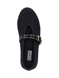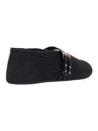 ALAIA "FLAT" BLACK STRAW BALLET FLATS WITH LEATHER TRIM, WOVEN PATTERN, ROUND TOE, ADJUSTABLE TOP STRAPS, RUBBER SOLE. PRODUCT INFO PRODUCT CODE AA3A058TK036999 COMPOSITION: 91% STRAW, 9% POLYESTER MADE IN: ITALY - TRIMS: 100% LEATHER - SOLE: 100% RUBBER