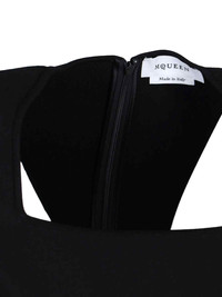 ALEXANDER MCQUEEN FLARED MIDI DRESS IN BLACK FABRIC WITH CREWNECK, SLEEVELESS, CONCEALED BACK ZIPPER CLOSURE, DRAPED SKIRT, FLARED HEM. PRODUCT INFO PRODUCT CODE 829730 Q1BDC1000 COMPOSITION: 100% VISCOSE SIZE AND FIT: REGULAR FIT MADE IN: ITALY