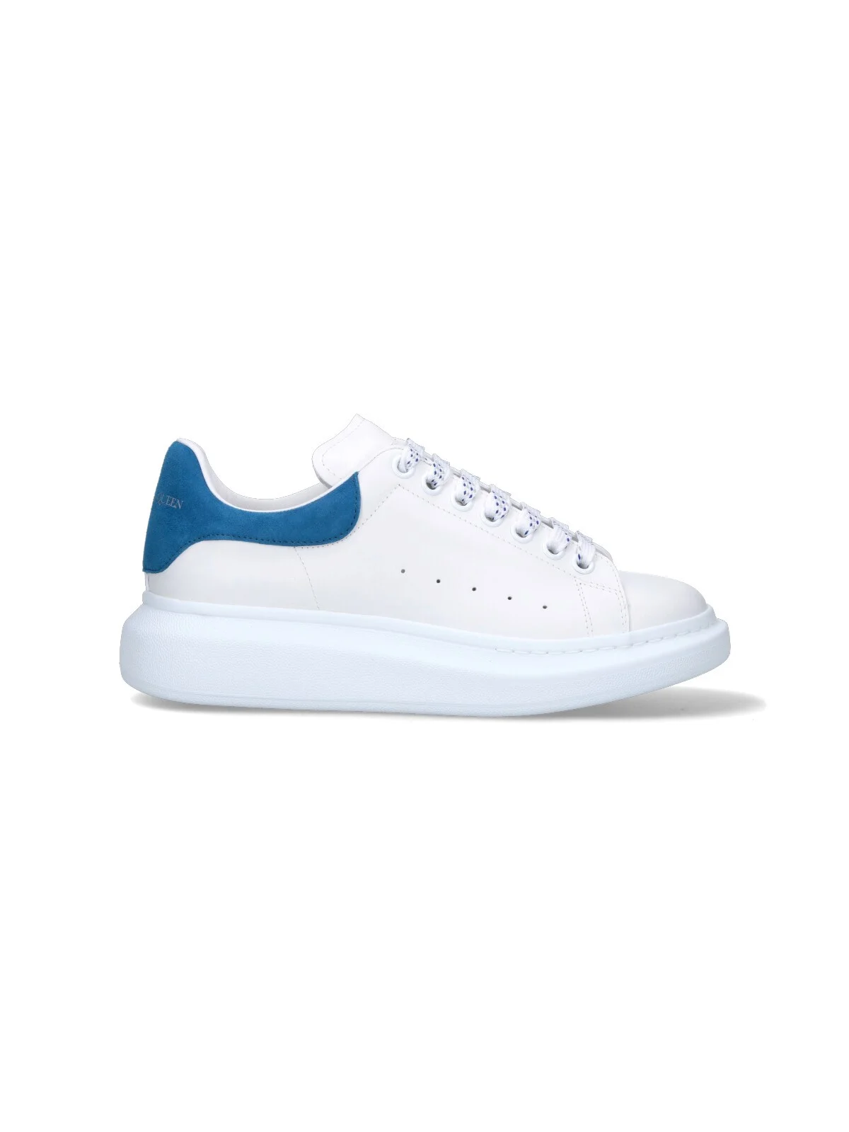 ALEXANDER MCQUEEN OVERSIZE SNEAKERS IN WHITE CALF LEATHER WITH ROUND TOE, LACES, GOLD LOGO EMBOSSED ON THE TONGUE, CONTRASTING SUEDE BACK TAB, EMBOSSED GOLD LOGO DETAIL, AND RUBBER PLATFORM SOLE. PRODUCT INFO PRODUCT CODE 553680 WIAIH9086 COMPOSITION: 100% CALF LEATHER MADE IN: ITALY - SOLE: 100% RUBBER
