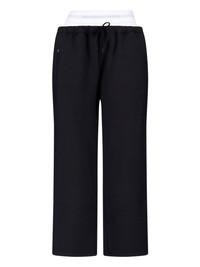 ALEXANDER WANG LOGO SPORTS PANTS IN BLACK COTTON WITH CONTRASTING ELASTIC HIGH WAIST, LOGO EMBROIDERY DETAIL, DRAWSTRING CLOSURE, TWO SIDE ZIP POCKETS, AND WIDE LEG. PRODUCT INFO PRODUCT CODE 4CC1244349020A COMPOSITION: 100% COTTON SIZE AND FIT: SOFT FIT MADE IN: CHINA