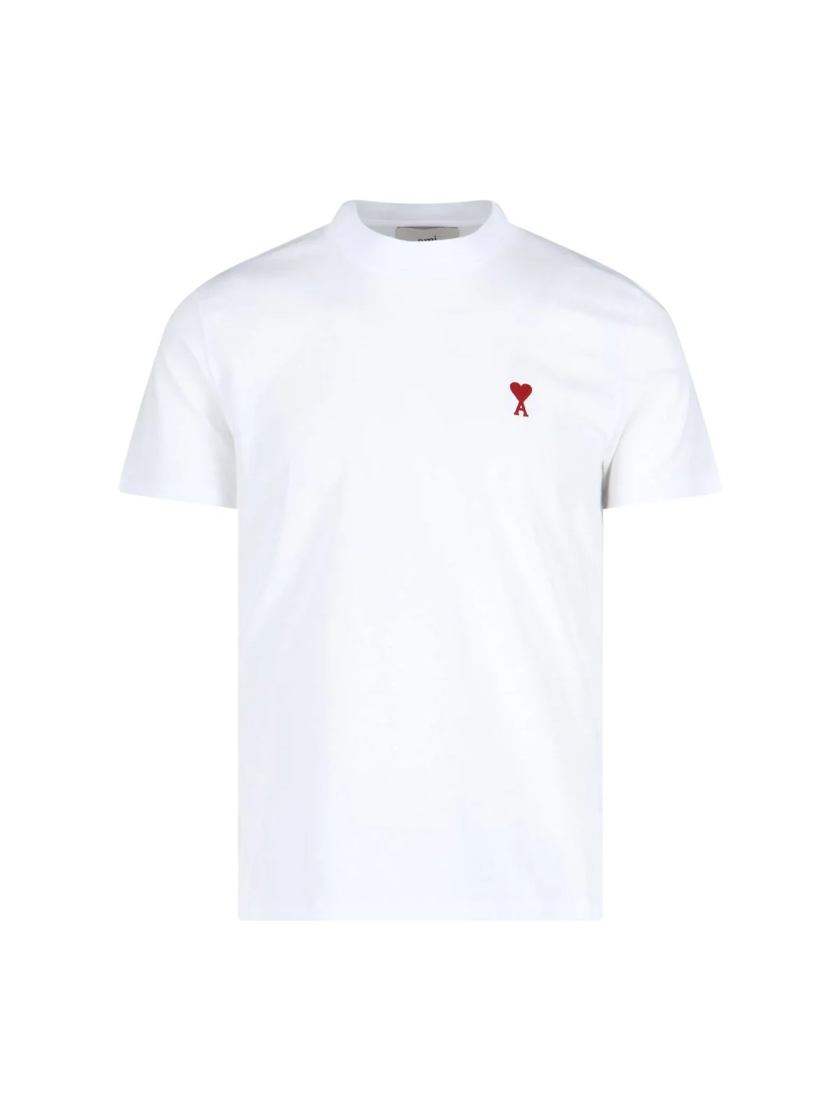 AMI 'AMI DE CŒUR' WHITE COTTON CREW NECK T-SHIRT WITH SHORT SLEEVES, RED LOGO EMBROIDERY ON THE CHEST, TONAL LOGO EMBROIDERY ON THE BACK, STRAIGHT HEM. PRODUCT INFO PRODUCT CODE BFUTS035 724100 COMPOSITION: 100% COTTON SIZE AND FIT: REGULAR FIT MADE IN: PORTUGAL