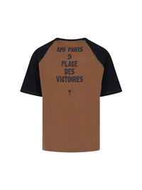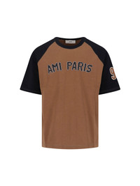 AMI LOGO T-SHIRT IN BROWN AND BLACK COTTON WITH CREW NECK, SWIRLING SLEEVES, CONTRAST LOGO EMBROIDERY ON THE FRONT, LOGO PATCH ON THE SLEEVE, CONTRAST MAXI PRINT ON THE BACK, STRAIGHT HEM. PRODUCT INFO PRODUCT CODE HTS350 7262162 COMPOSITION: 100% COTTON SIZE AND FIT: SOFT FIT MADE IN: PORTUGAL