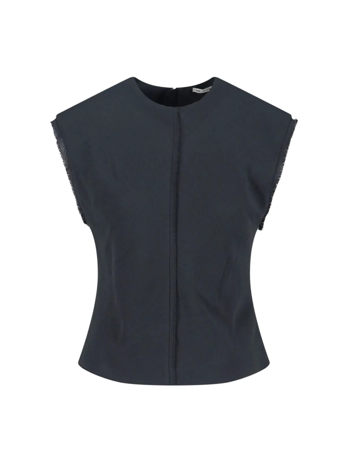 BLACK SLEEVELESS RAW EDGE DETAILS TOP
