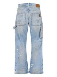 POLO RALPH LAUREN CARPENTER JEANS IN LIGHT BLUE DENIM WITH DISTRESSED WASH, ALL-OVER DETROYED DETAILS, MID WAIST, BELT LOOPS, BUTTON CLOSURE, FIVE POCKET DESIGN, BACK LOGO PATCH DETAIL, KNEE REINFORCEMENTS, SIDE TOOL LOOP, SIDE TOOL POCKET, BACK LOGO PATCH, STRAIGHT LEG. PRODUCT INFO PRODUCT CODE AMDNGH1083PERFECT ANTIQUE INDIGO COMPOSITION: 100% COTTON SIZE AND FIT: REGULAR FIT MADE IN: ITALY - "DENIM" SIZE SCALE