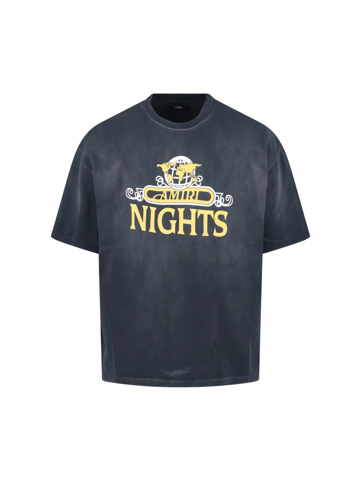 AMIRI 'NIGHTS' LOGO T-SHIRT IN BLACK COTTON WITH DISTRESSED WASH, CREW NECK, RIBBED TRIMS, DROPPED SHOULDERS, SHORT SLEEVES, CONTRAST MAXI LOGO PRINT ON THE FRONT AND BACK, STRAIGHT HEM. PRODUCT INFO PRODUCT CODE AMJYTE1207BLACK COMPOSITION: 100% COTTON SIZE AND FIT: OVERSIZED FIT MADE IN: ITALY