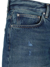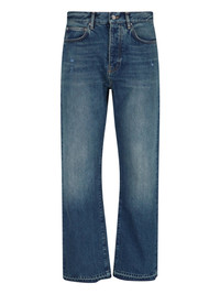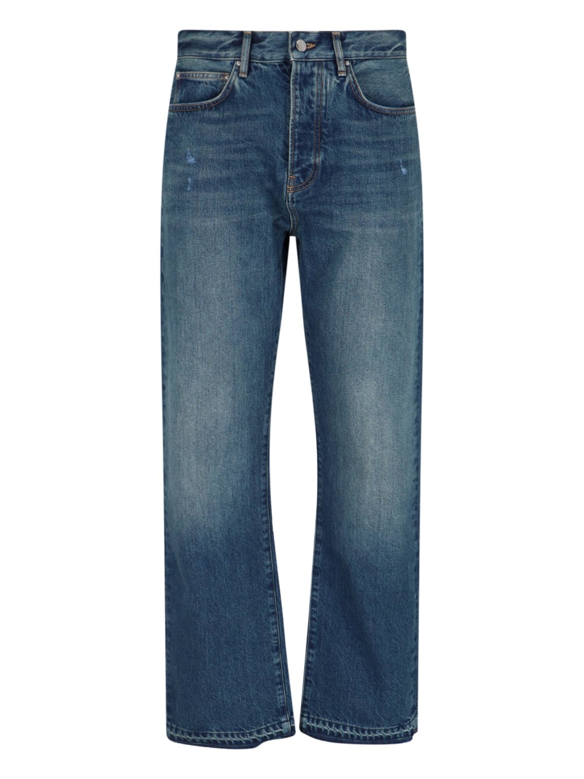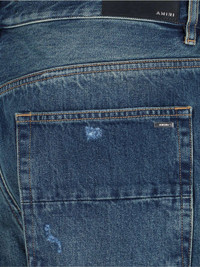 AMIRI STRAIGHT BLUE DENIM JEANS WITH DISTRESSED WASH, ALL-OVER DESTROYED DETAILS, MID WAIST, BELT LOOPS, BUTTON AND ZIP CLOSURE, FIVE POCKET DESIGN, SILVER METAL TAG DETAIL WITH LOGO ENGRAVED ON THE BACK, LOGO PATCH ON THE BACK, STRAIGHT LEG. PRODUCT INFO PRODUCT CODE AMDNGH1038DARK INDIGO COMPOSITION: 100% COTTON SIZE AND FIT: REGULAR FIT MADE IN: ITALY - "DENIM" SIZE SCALE