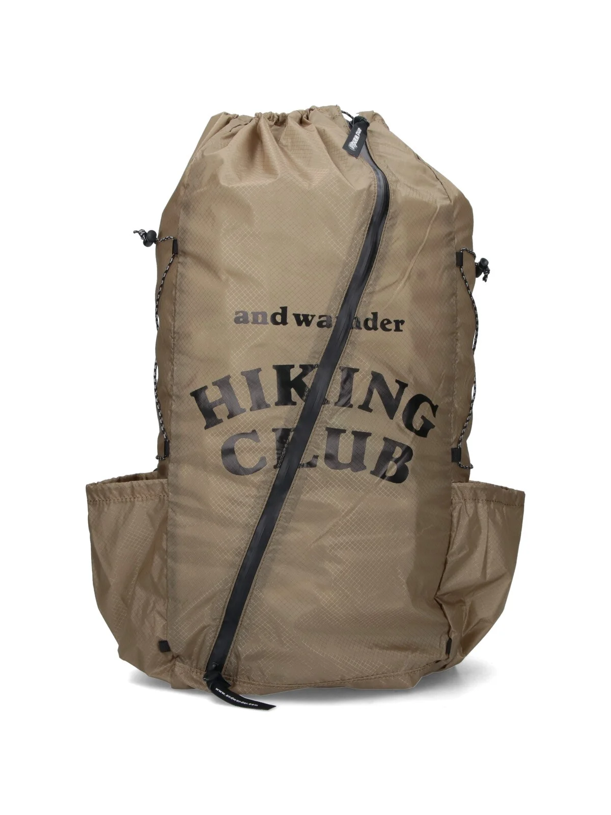 AND WANDER 'HIKING CLUB' BACKPACK IN BEIGE WATER-REPELLENT FABRIC WITH TOP HANDLE, ADJUSTABLE SHOULDER STRAPS, DRAWSTRING CLOSURE AND MAXI FRONT ZIP, CONTRAST LOGO PRINT ON THE FRONT, TWO SIDE POCKETS, SIDE DRAWSTRING DETAIL, INNER SLIP POCKET, MAIN INNER COMPARTMENT. PRODUCT INFO PRODUCT CODE 5745275042040 COMPOSITION: 100% NYLON SIZE AND FIT: H 40 X W 24 X D 10 CM MADE IN: CHINA - HANDLE DROP: 5 CM