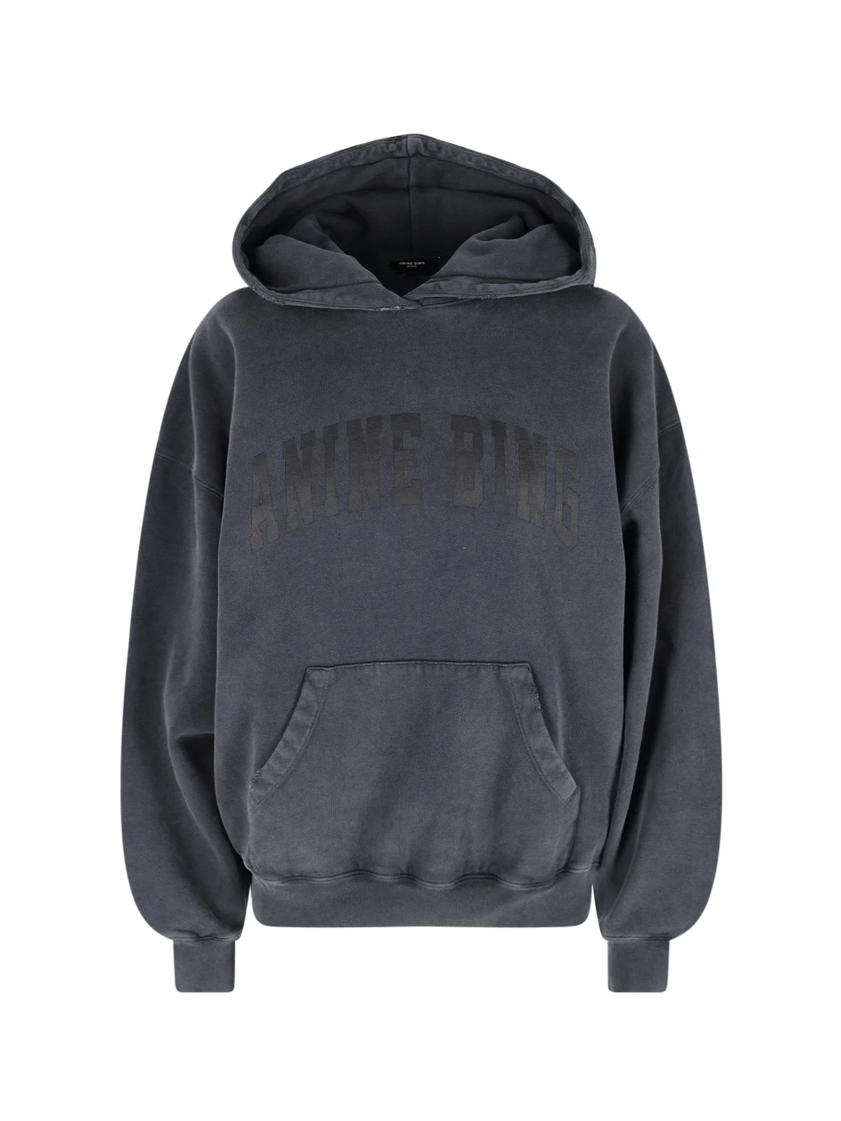 ANINE BING 'HARVEY' BLACK COTTON HOODIE WITH DISTRESSED EFFECT, LONG SLEEVES, TONAL PRINTED LOGO ON THE FRONT, MAXI FRONT POCKET, RIBBED TRIM, STRAIGHT HEM. PRODUCT INFO PRODUCT CODE S 08 5185 002DARK WASHED COMPOSITION: 100% COTTON SIZE AND FIT: SOFT FIT MADE IN: TURKEY