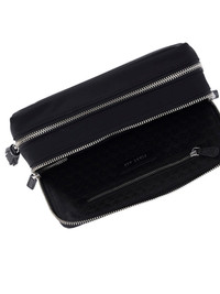 ANYA HINDMARCH 'WASH BAG' POUCH IN BLACK NYLON WITH LEATHER TRIM, DOUBLE ZIP CLOSURE, ZIPPER TASSEL DETAIL, GOLD LOGO EMBOSSED ON THE FRONT, INNER FLAT POCKET, INNER ZIP POCKET, TWO SEPARATE INNER COMPARTMENTS. PRODUCT INFO PRODUCT CODE 194594BLACK COMPOSITION: 100% NYLON SIZE AND FIT: H 15 X W 9.5 X D 5 CM MADE IN: CHINA - TRIMS: 100% LEATHER - PRODUCT MADE FROM RECYCLED MATERIALS