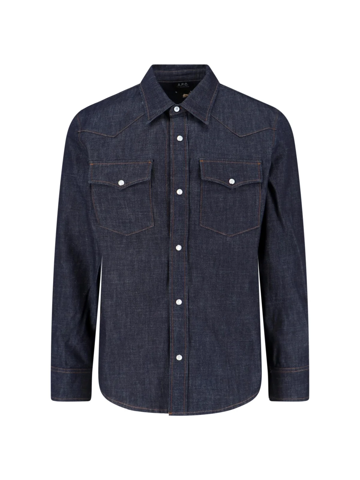 A.P.C. BLUE COTTON DENIM SHIRT WITH CLASSIC COLLAR, BUTTON CLOSURE, LONG SLEEVES, TWO FRONT BUTTON FLAP POCKETS, LONG SLEEVES, CURVED HEM. PRODUCT INFO PRODUCT CODE COHOJ H12632IAI COMPOSITION: 100% COTTON SIZE AND FIT: REGULAR FIT MADE IN: TUNISIA