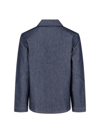 A.P.C. KERLOUAN JACKET IN BLUE COTTON DENIM WITH CLASSIC COLLAR, FRONT BUTTON CLOSURE, LONG SLEEVES, TWO FRONT POCKETS, EMBROIDERED LOGO ON THE POCKET, AND CURVED HEM. PRODUCT INFO PRODUCT CODE COZZI H03205IAI COMPOSITION: 98% COTTON, 2% POLYURETHANE SIZE AND FIT: REGULAR FIT MADE IN: VIETNAM