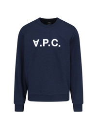 LOGO SWEATSHIRT A.P.C., ORGANIC COTTON - BLUE, CREW NECK, VELVET LOGO ON THE FRONT, RIBBED TRIMS, STRAIGHT HEM. PRODUCT INFO PRODUCT CODE COHBN M27907TIQ COMPOSITION: 100% ORGANIC COTTON SIZE AND FIT: REGULAR MADE IN: TURKEY - PRODUCT MADE FROM ORGANIC MATERIALS