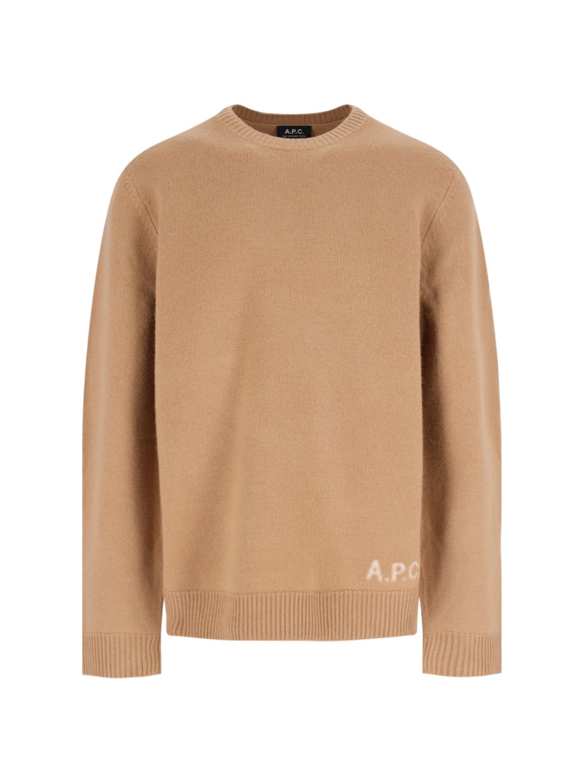 BROWN MERINO WOOL SWEATER A.P.C., CREW NECK, SIDE WHITE LOGO INTARSIA, RIBBED TRIM, STRAIGHT HEM. PRODUCT INFO PRODUCT CODE WVBDJ H23059CAB COMPOSITION: 100% MERINO WOOL SIZE AND FIT: REGULAR FIT MADE IN: CHINA