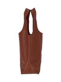 A.P.C. 'NINON' TOTE BAG IN BROWN FAUX LEATHER WITH TWO HANDLES, WHITE LOGO PRINT ON THE FRONT, INNER FLAT POCKET, MAIN INNER COMPARTMENT. PRODUCT INFO PRODUCT CODE PUAAT M61565CAD COMPOSITION: 55% POLYURETHANE 40% POLYESTER 5% CALCIUM CARBONATE SIZE AND FIT: H 35.5 X W 45 X D 14 CM MADE IN: CHINA - PRODUCT MADE FROM RECYCLED MATERIALS