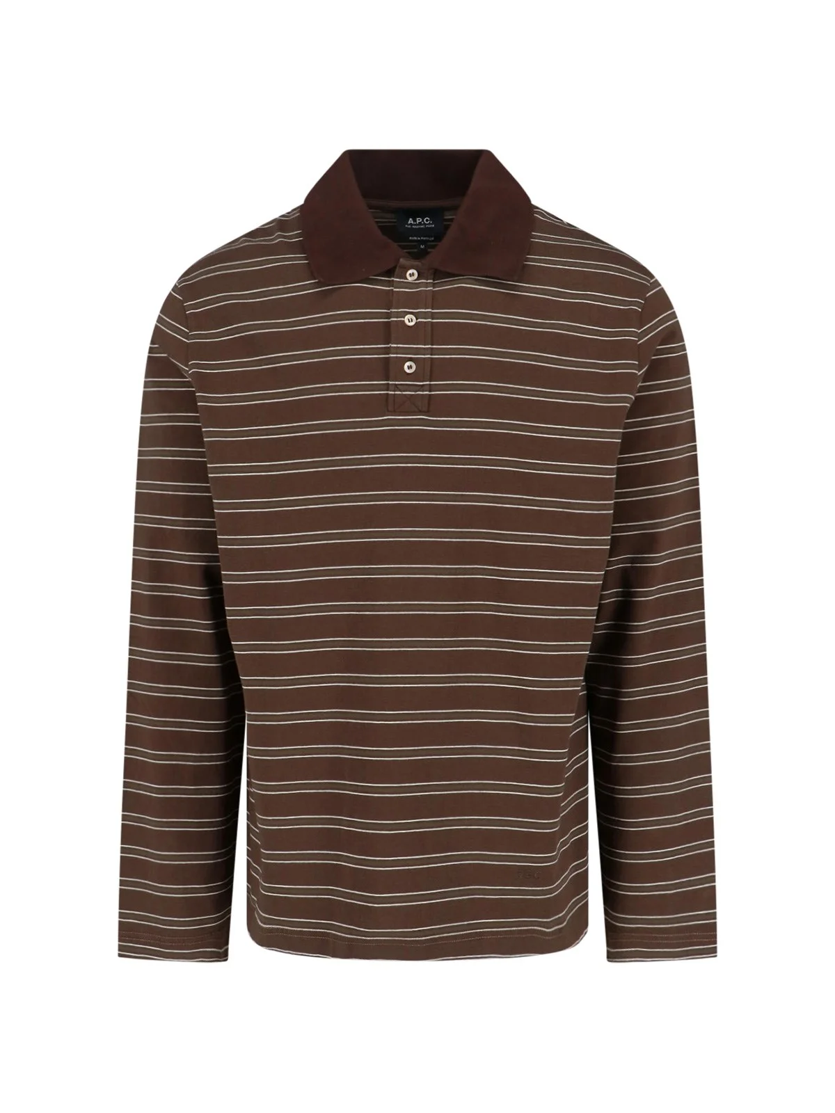 A.P.C. STRIPED POLO SHIRT IN BROWN COTTON WITH CLASSIC COLLAR, LONG SLEEVES, BUTTON CLOSURE, AND STRAIGHT HEM. PRODUCT INFO PRODUCT CODE COHLV H26519CAA COMPOSITION: 100% COTTON SIZE AND FIT: REGULAR FIT MADE IN: PORTUGAL