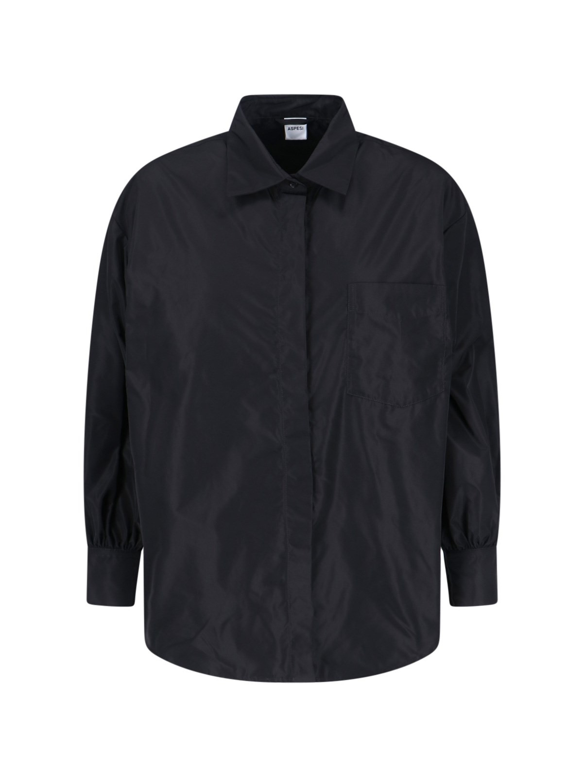 ASPESI CLASSIC SHIRT IN BLACK FABRIC WITH COLLAR, BUTTON CLOSURE, FRONT FLAT POCKET, BUTTON CUFFS, CURVED HEM. PRODUCT INFO PRODUCT CODE 5N25 P00801241 COMPOSITION: 100% POLYESTER SIZE AND FIT: SOFT FIT MADE IN: ROMANIA