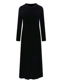 ASPESI BLACK VELVET MIDI DRESS WITH ROUND NECKLINE, LONG SLEEVES, STRAIGHT HEM. PRODUCT INFO PRODUCT CODE 2950 A95001241 COMPOSITION: 82% VISCOSE, 18% SILK SIZE AND FIT: REGULAR FIT MADE IN: ITALY