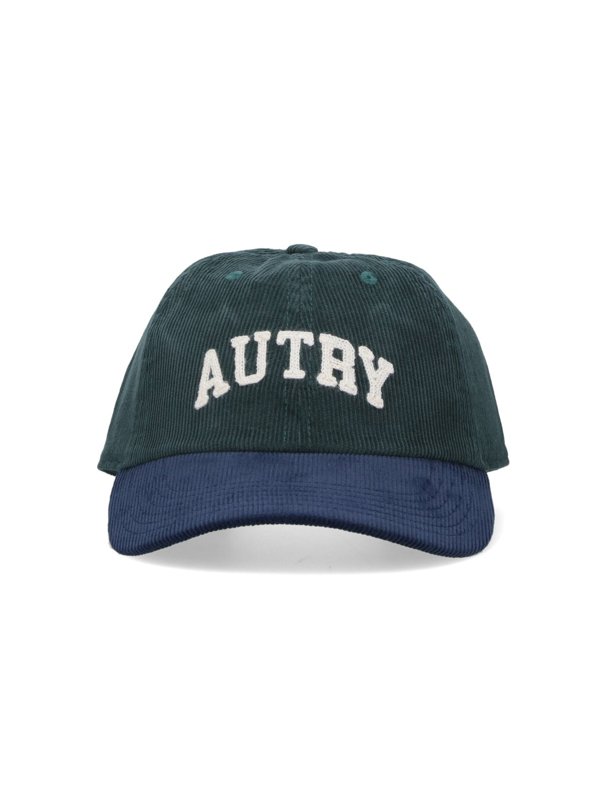 AUTRY LOGO BASEBALL CAP IN GREEN COTTON WITH RIBBED VELVET KNIT, BLUE CURVED VISOR, WHITE EMBROIDERED LOGO ON THE FRONT, ADJUSTABLE BACK. PRODUCT INFO PRODUCT CODE ACPUQ9BG COMPOSITION: 100% COTTON MADE IN: CHINA