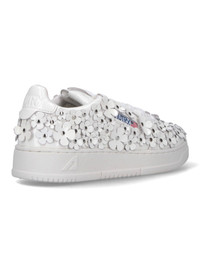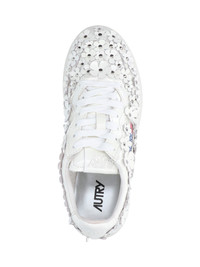 AUTRY "MEDALIST LOW BLOOMING" SNEAKERS IN WHITE CALF LEATHER WITH ALL-OVER "BLOOMING" PROCESSING, SILVER METAL STUDS DETAIL, ROUND TOE, LACE-UP CLOSURE, LOGO EMBROIDERY ON THE TONGUE, SIDE LOGO EMBROIDERY, TAB LOGO PRINT ON THE BACK, RUBBER SOLE. PRODUCT INFO PRODUCT CODE AULWPW02 COMPOSITION: 100% CALF LEATHER MADE IN: INDONESIA - SOLE: 100% RUBBER