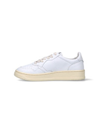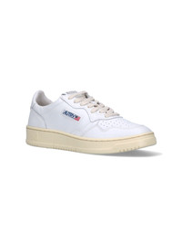 AUTRY LOW "MEDALIST" SNEAKERS WITH WHITE LEATHER, OPENWORK ROUND TOE CAP, LACE-UP CLOSURE, LOGO LABEL TONGUE, SIDE BLUE LOGO PRINT, A BACK LOGO TAB, AND A CREAM RUBBER SOLE. PRODUCT INFO PRODUCT CODE AULMLL15 COMPOSITION: UPPER: 100% COW LEATHER, LINING: 50% TOWEL, 40% PIG SKIN, 10% NYLON, OUTSOLE: 100% RUBBER MADE IN: INDONESIA - SOLE: 100% RUBBER