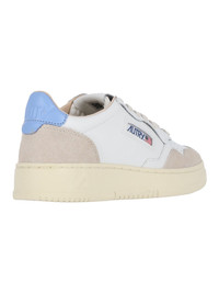 AUTRY "MEDALIST" LOW SNEAKERS IN WHITE LEATHER WITH PINK SUEDE TRIM, ROUND TOE, LACE-UP CLOSURE, LOGO LABEL ON THE TONGUE, SIDE LOGO, BACK TAB IN LIGHT BLUE LEATHER, EMBOSSED LOGO DETAIL, RUBBER SOLE, EMBOSSED LOGO DETAIL ON THE SIDE. PRODUCT INFO PRODUCT CODE AULWLS04 COMPOSITION: 90% LEATHER, 10% NYLON MADE IN: INDONESIA - SOLE: 100% RUBBER