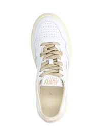 AUTRY "MEDALIST" LOW SNEAKERS IN WHITE LEATHER WITH BEIGE SUEDE TRIM, ROUND TOE, GOLD LACES, LOGO LABEL ON THE TONGUE, GOLD SIDE LOGO, EMBOSSED LOGO ON THE BACK TAB, RUBBER SOLE. PRODUCT INFO PRODUCT CODE AULWSW01 COMPOSITION: 100% CALF LEATHER MADE IN: INDONESIA - SOLE: 100% RUBBER