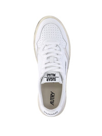 SUGAR X AUTRY 'M6' SNEAKERS, LEATHER, WHITE COLOR, CREAM SUEDE DETAILS, PERFORATED ROUND TOE, LACE-UP CLOSURE, LOGO TAB LABEL, CONTRASTING LOGO PRINT DETAIL ON BACK TAB, BLACK COLOR LOGO EMBROIDERY ON SIDE, CREAM RUBBER SOLE. PRODUCT INFO PRODUCT CODE AULMSGR1 COMPOSITION: 100% LEATHER - 100% LEATHER - SOLE: 100% RUBBER - MADE IN INDONESIA - AULM-SGR1