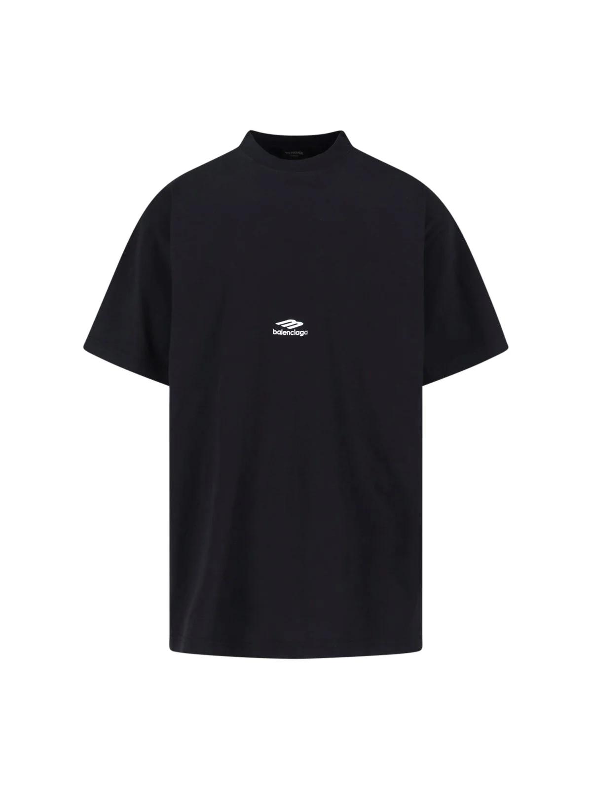 BALENCIAGA '3B SPORTS ICON' BLACK COTTON CREW NECK T-SHIRT WITH SHORT SLEEVES, LOGO PRINTED AT THE BACK AND STRAIGHT HEM. PRODUCT INFO PRODUCT CODE 850345 TTVK59034 COMPOSITION: 100% COTTON SIZE AND FIT: SOFT FIT MADE IN: PORTUGAL