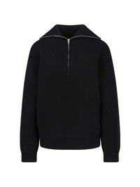 BALENCIAGA BLACK COTTON BACK TO FRONT SWEATER WITH RIBBED KNIT, WIDE FRONT COLLAR, DROPPED SHOULDERS, BACK ZIP CLOSURE, TWO FRONT ZIP POCKETS, RIBBED TRIM, STRAIGHT HEM. PRODUCT INFO PRODUCT CODE 848840 T34211000 COMPOSITION: 100% COTTON SIZE AND FIT: SOFT FIT MADE IN: ITALY
